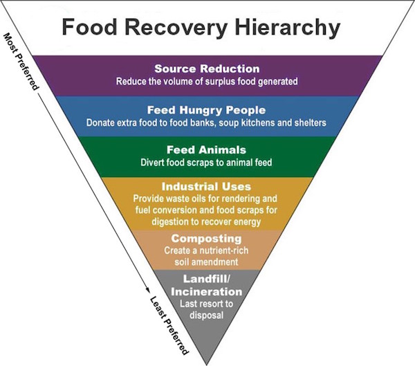 The food recovery hierarchy places reduction as the most preferred means of reducing food waste.